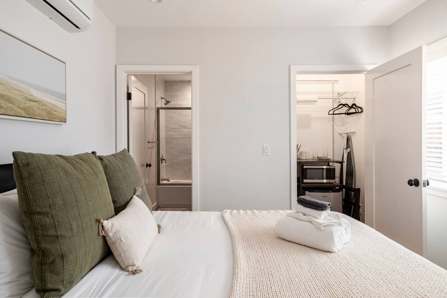 Towels and linens are provided at check-in. No daily towel or linen service—used items will be refreshed at checkout.