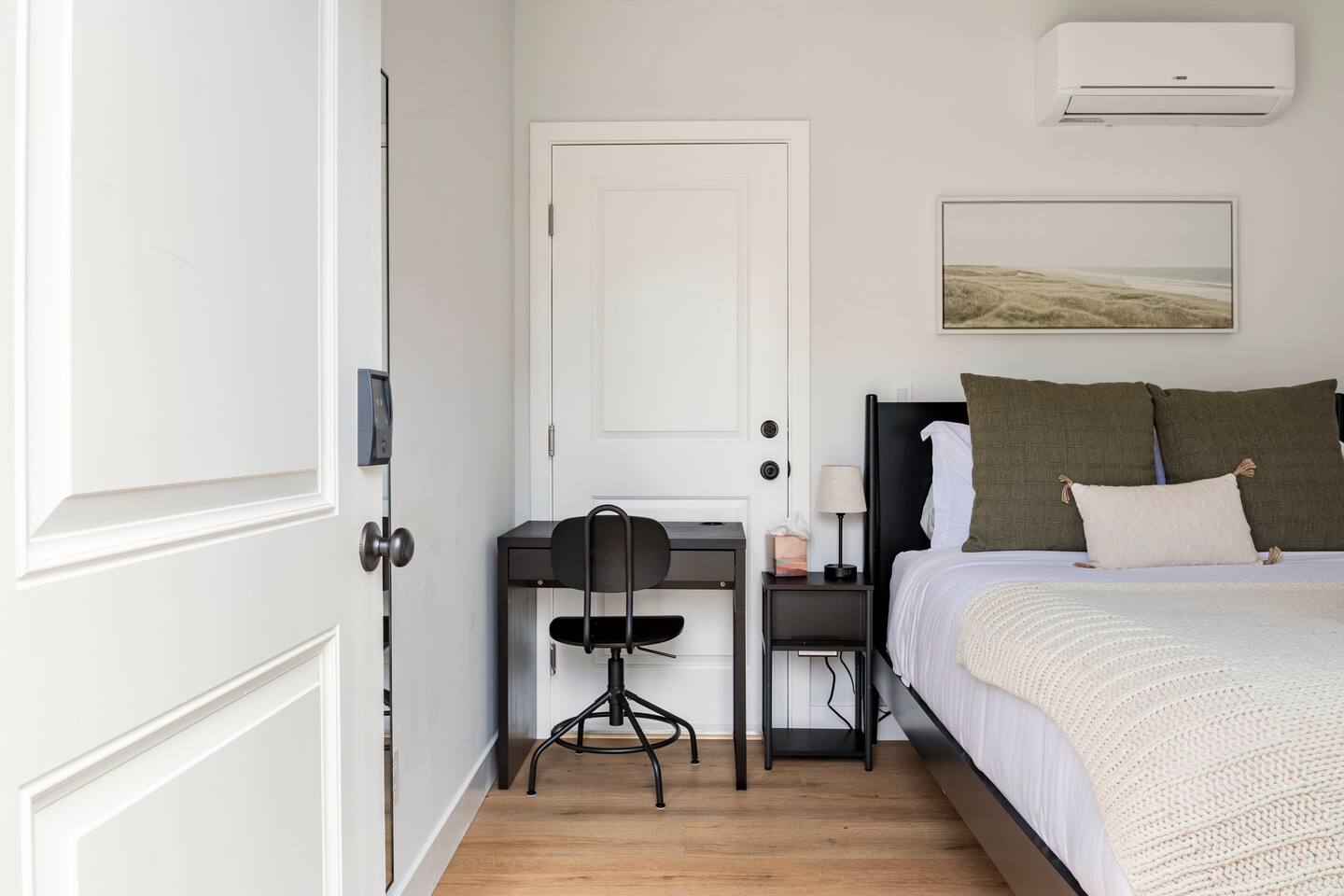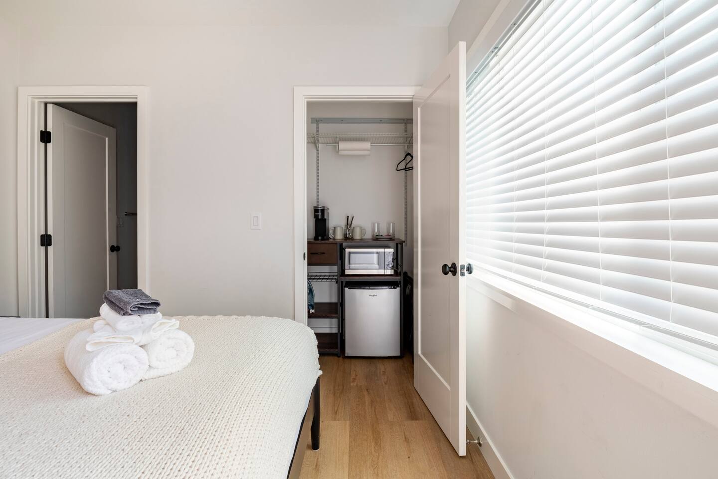 Clean, new construction guest studio with private entrance centrally located in a residential neighborhood near downtown Redwood City. Queen bed with full bathroom, A/C, and fridge/coffee/microwave. Small desk next to bed great for remote work or studies. Easy self check-in with smart lock and easy parking.